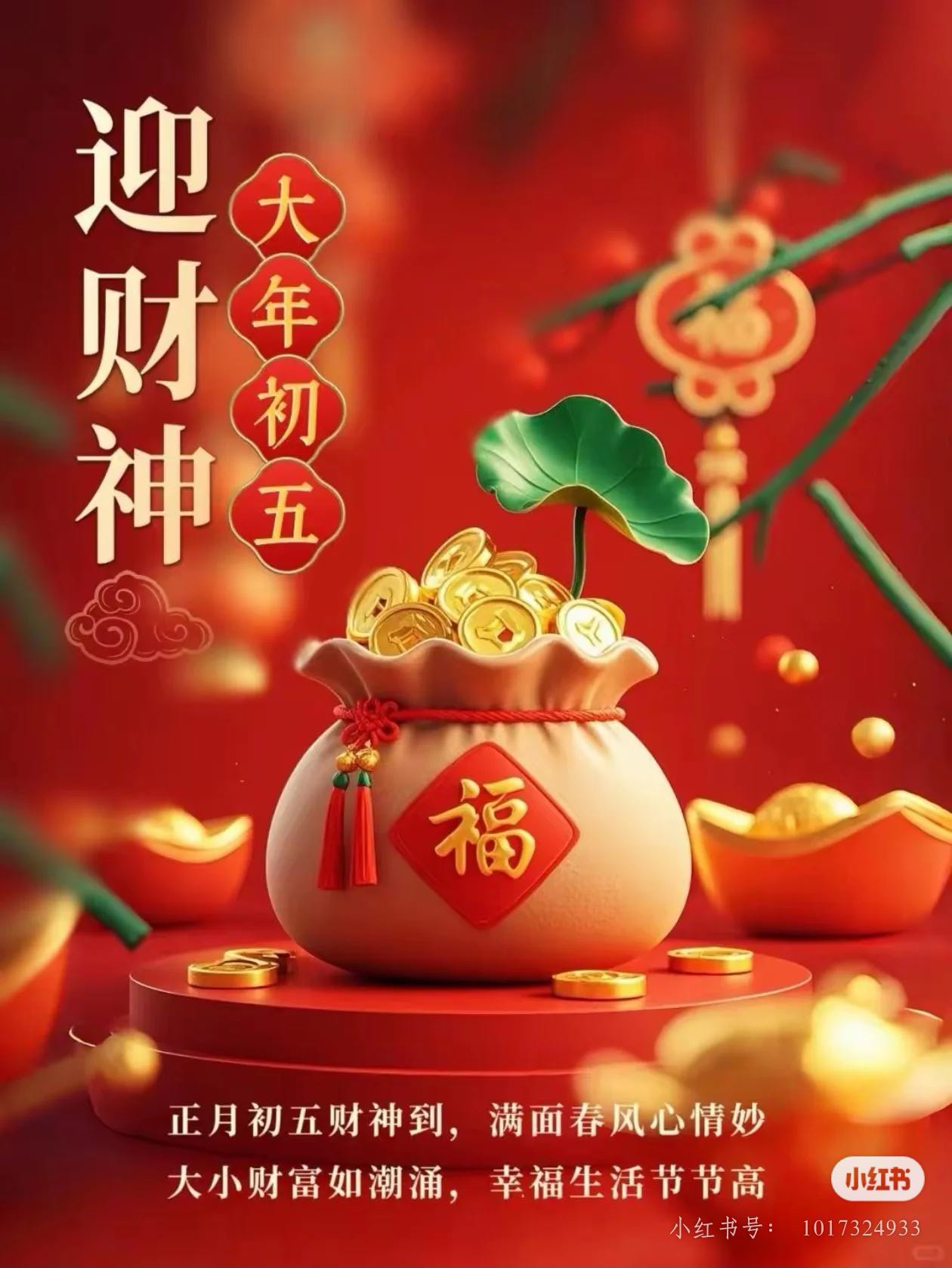 正月初五,恭迎五路财神。 东路招财,西路纳珍, 南路利市,北路纳库,中路聚财。 愿新的一年, 年年富足事事顺,四季财源福满门²⁰²⁶。